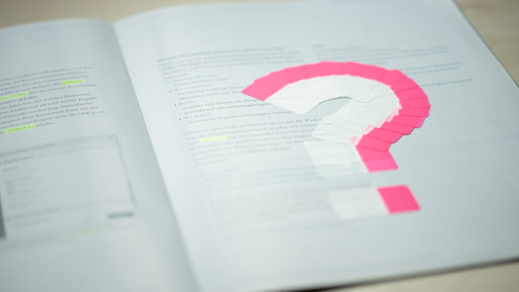 An dieser Stelle möchten wir Fragen rund um OER und das Repositorium beantworten. Dabei geht es sowohl um allgemeine als auch konkrete Fragen zu rechtlichen Aspekten sowie praktische Hinweise im Umgang mit dem Repositorium. Nutzen Sie die weiterführenden Links auf der rechten Seite für die einzelnen Themen. Die Fragen werden nach und nach weiter ergänzt und aktualisiert — bitte beachten Sie jedoch, dass insbesondere bei Rechtsthemen ggf. nicht immer der neueste Stand wiedergegeben ist. Eine große Sammlung von Antworten zu allen Aspekten rund um OER bietet auch die OER FAQ der Agentur J&K.